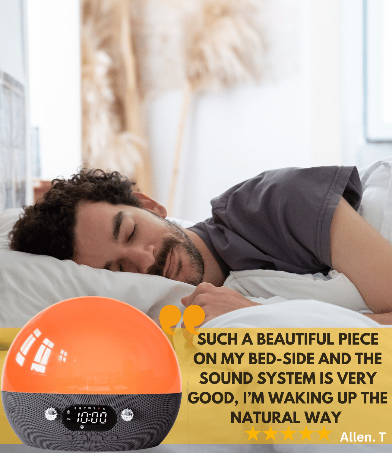Featuring a sunrise simulation that gradually brightens your room. Smart home compatibility for voice control, streaming, intuitive controls that make waking up refreshing & effortless. Elevate your mornings with this stylish, modern design that fits seamlessly into any bedroom decor!