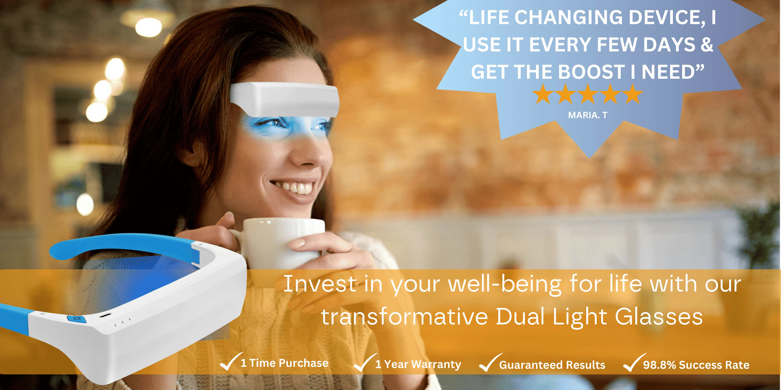 Place your order before 4pm and receive your Dual Blue Light S.A.D Glasses tomorrow!